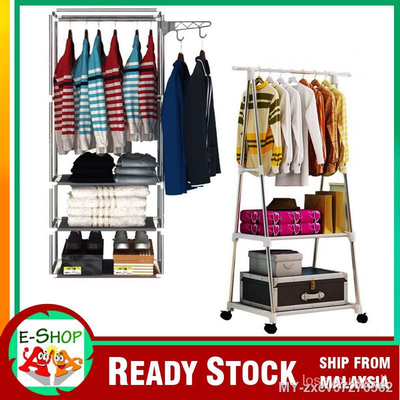 Hiz8 Rak Besi Sangkut Pakaian Ampaian Baju Jemuran Almari Kain Kabinet Seluar Beg Topi Serbaguna Beroda Roda Shopee Malaysia