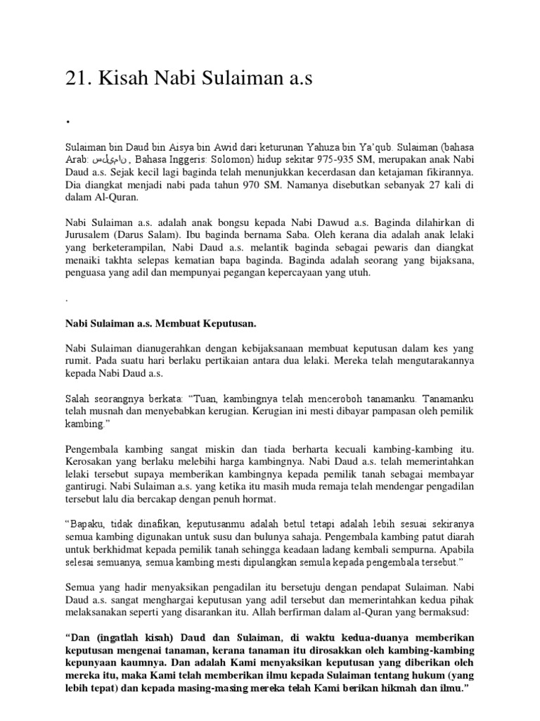 Kisah Nabi Sulaiman Lengkap Dari Lahir Sampai Wafat Muslimidia
